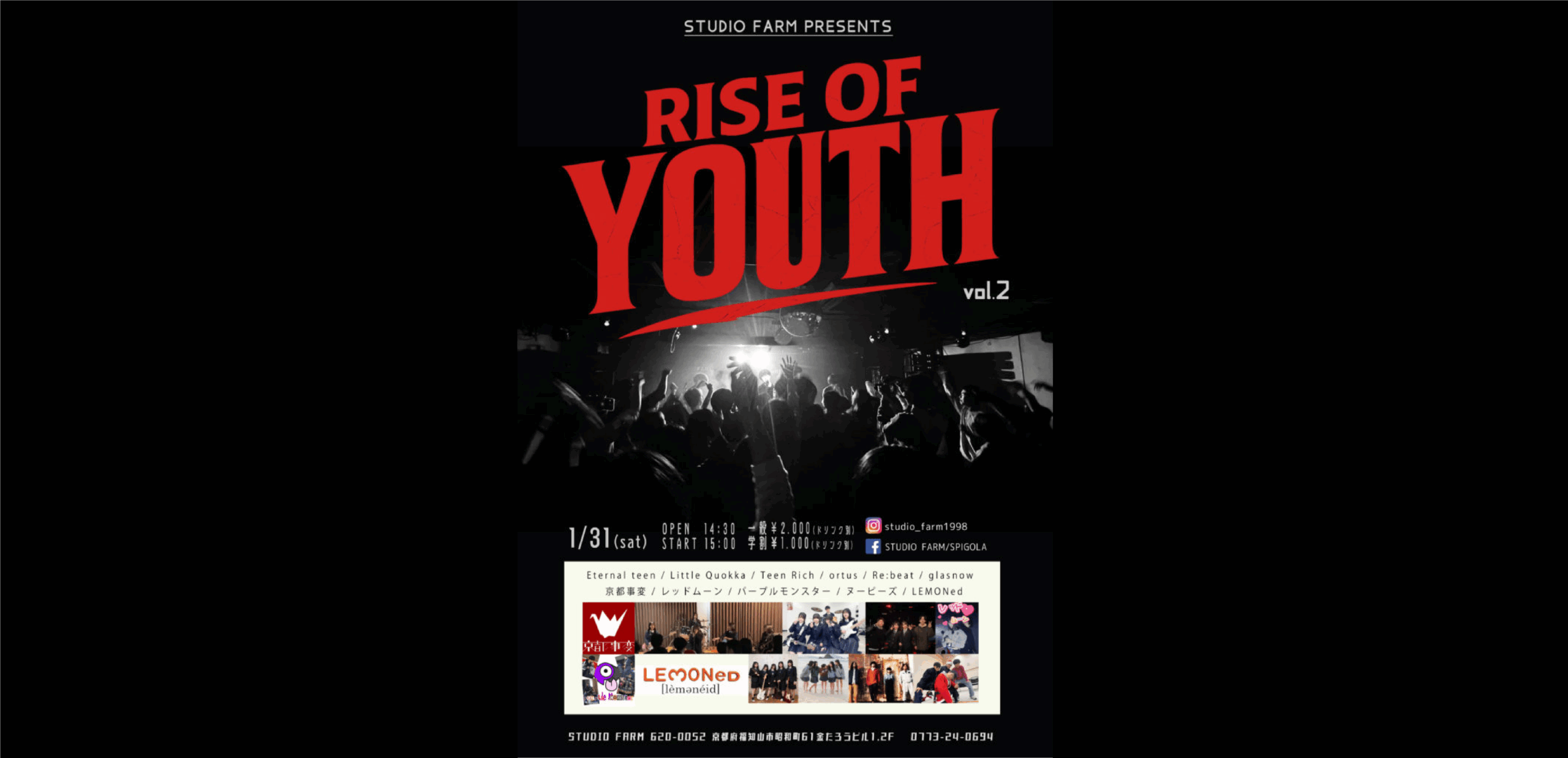 今週のイベントはコチラ♪ ★1/31(土)★【RISE OF YOUTH Vol.2】 *出演*◆Eternal teen◆Little Quokka◆Teen Rich◆ortus◆Re:be …