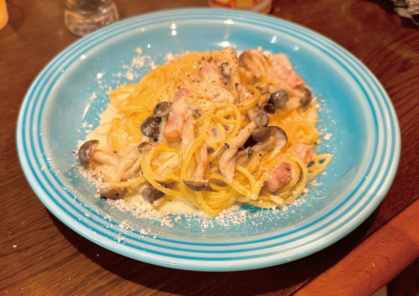 濃厚なクリームソースにきのことベーコンをトッピング!シンプルで食べやすいクリームパスタです♪